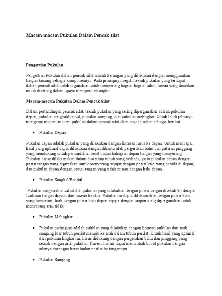 Pukulan adalah serangan tangan yang ditujukan untuk mengalahkan lawan. Teknik dasar pukulan dalam pencak silat. Beladiri pencak silat di indonesia memiliki organisasi resmi yang bernama ipsi (ikatan pencak silat indonesia). Permainan yang cukup bagus dipakai untuk asah otak ini sudah. Pencak silat tidak hanya gerakan dan pukulan saja, akan tetapi pencak silat juga memiliki nilai seni yang tinggi.